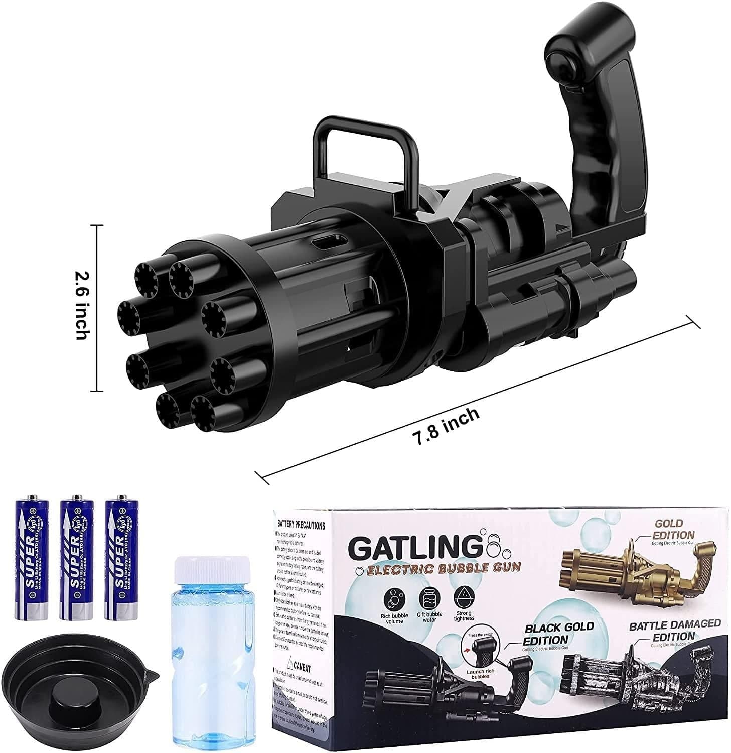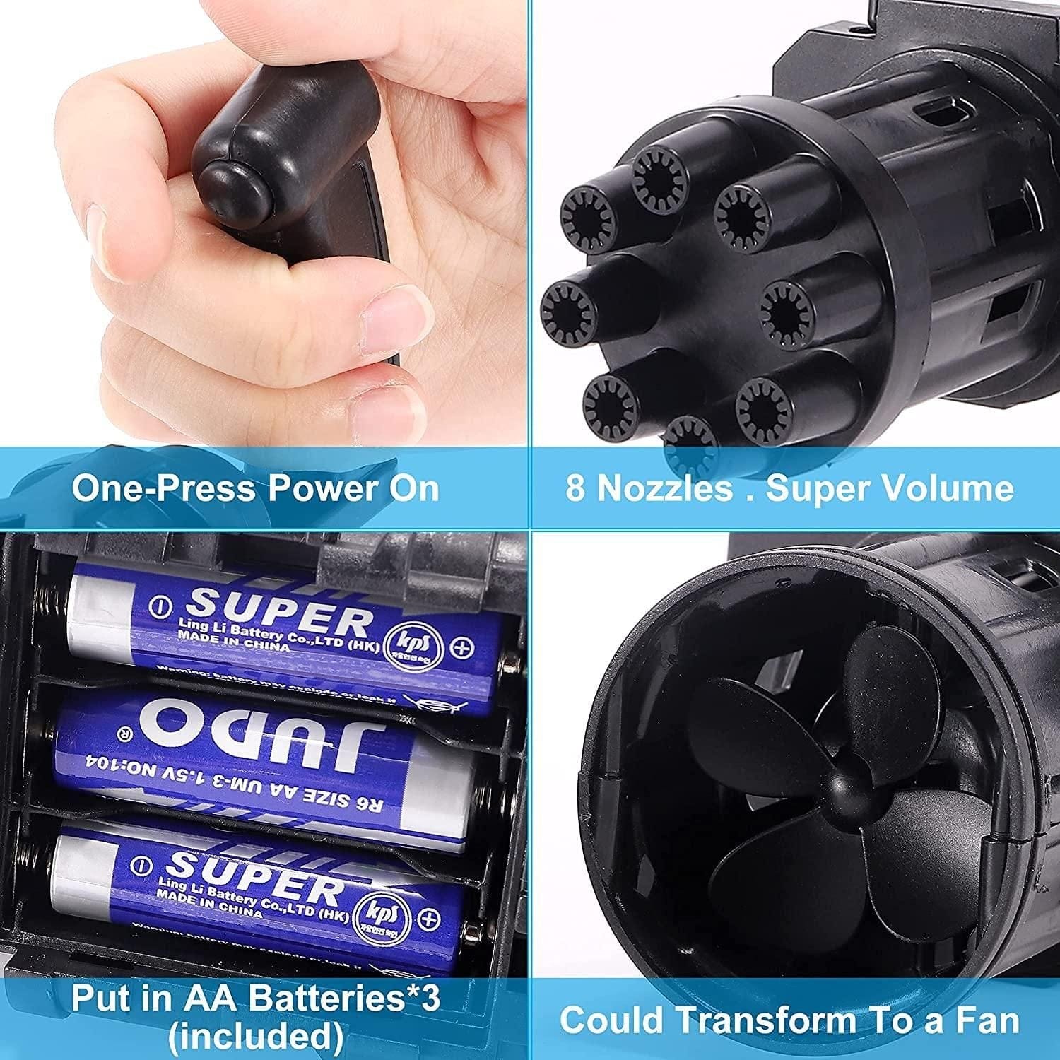 Product Name: Bubble Gun- 8 Hole Automatic Gatling Bubble Gun Blower Maker, with 3 Batteries and Bubble Water(Assorted Color)